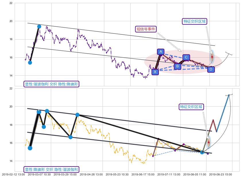 ➢ 谐波伽利属【短级别信号事件】降旗形属【长级别信号事件】长短周期组合信号事件, 短长事件长度比28.89%