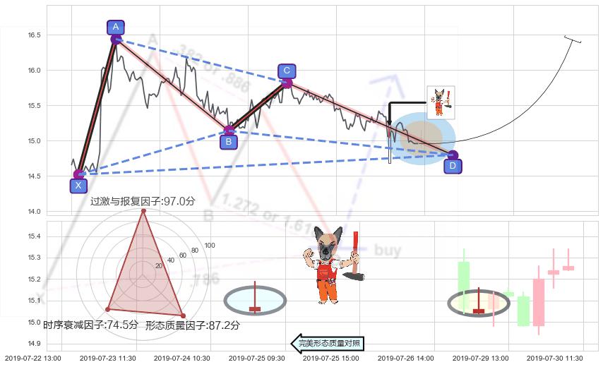 ➢ 🕰 价格走势在2019-07-29 10:30:00至2019-07-29 10:30:00期间形成看涨(低位)倒锤头线,残存影响值:7.41
