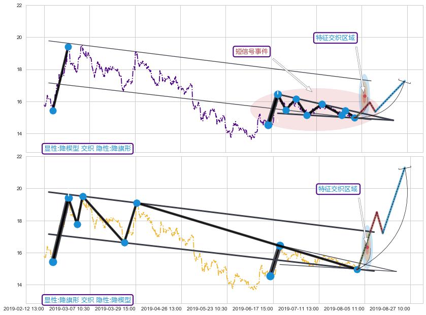 ➢ 降楔型属【短级别信号事件】降旗形属【长级别信号事件】长短周期组合信号事件, 短长事件长度比28.89%