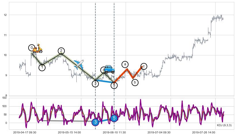 ➢ 规则平台型:子浪335结构,ⓐⓑ振幅接近,ⓒ点稍微超过ⓐ点结束位置