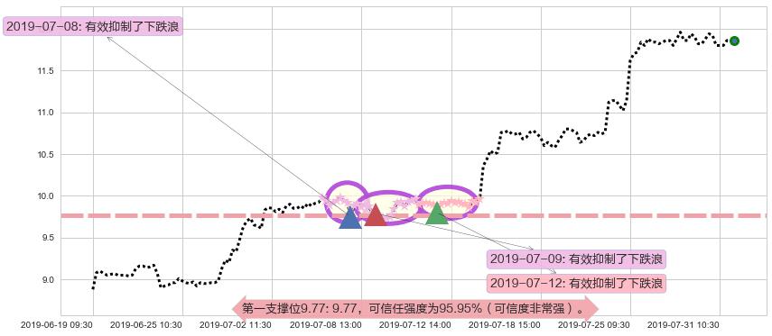 2019-07-12: 第一支撑位9.77有效抑制了下跌浪,成功阻止了价格的继续下跌。