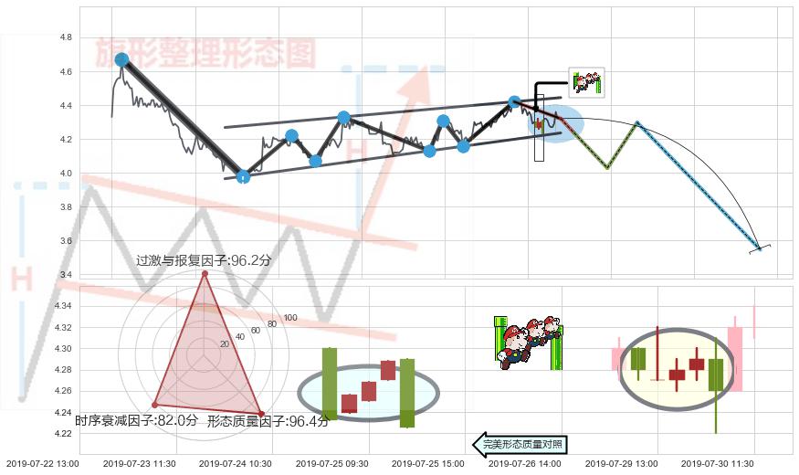 ➢ 🕰 价格走势在2019-07-29 11:30:00至2019-07-30 09:30:00期间形成下降三部曲(降势三鹤),残存影响值:-7.83