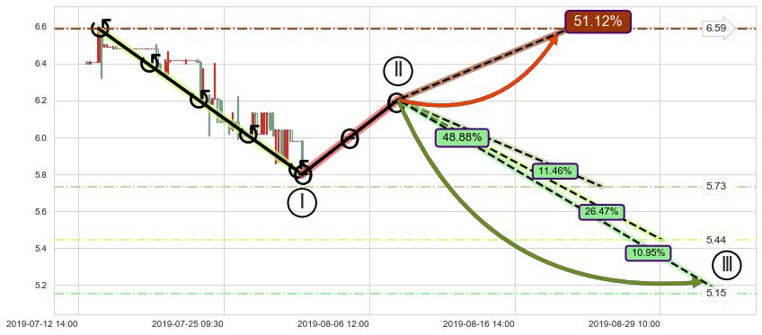 ➣ 大趋势循环浪继续向下概率48.88%