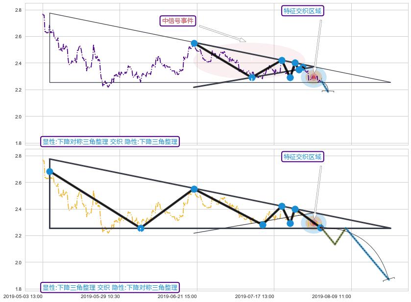➢ 下降对称三角整理属【中级别信号事件】下降三角整理属【长级别信号事件】中长周期组合信号事件,中长事件长度比40.96%