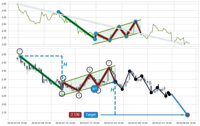 ➣ 最小中继整理跌幅→𝐇: 0.200000 (𝐇旗杆的长度:旗杆起点→顶点)