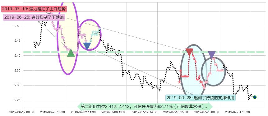 ♘ 阻力价格位2.412,可信任强度92.71%,距离最后交易2019-07-31 15:00形成的收盘价格2.260相差 +6.72%