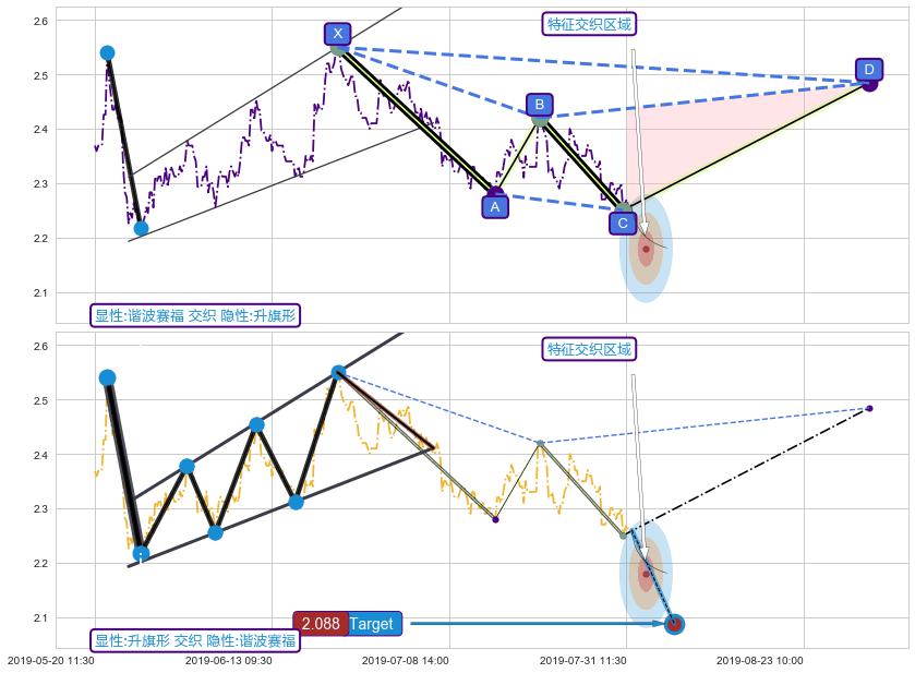 ➣ 未完成【赛福】形态起点X: 06-21:10, 已到达C点: 07-31:09, 预测最终D点: 09-02:11, 共298交易小时