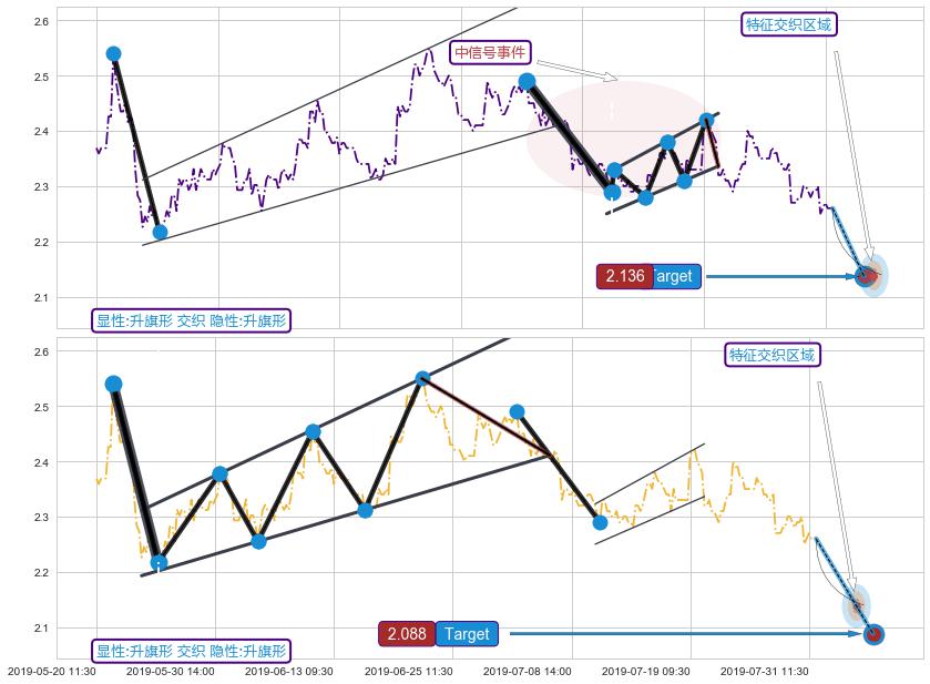 ♘ 在最后的下跌阶段2019-06-21 10:30至2019-07-31 14:00,存在 持续未破位的阻力位 ,阻力价格2.362,可信任强度86.62%,其距离最后价格2.260相差 +4.53%