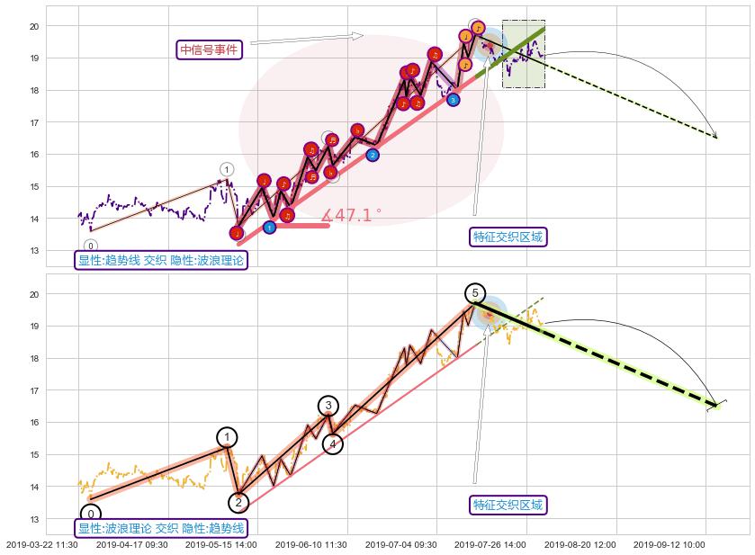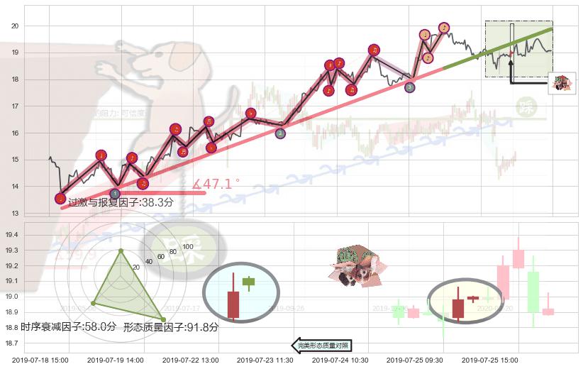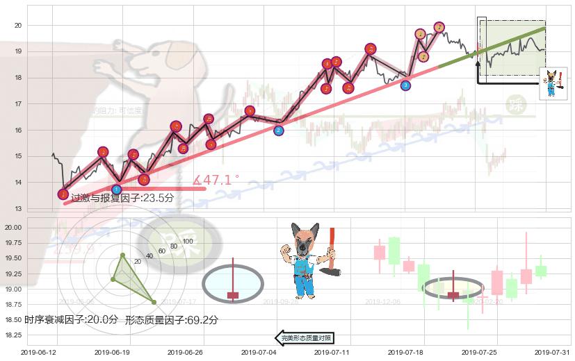 ➢ 2019-05-09 10:30-2019-07-15 13:00上升趋势存在反转[风险],其原上升趋势的支撑位(19.87)已破位[强阻力信号],原上升趋势角度: 47.1˚
