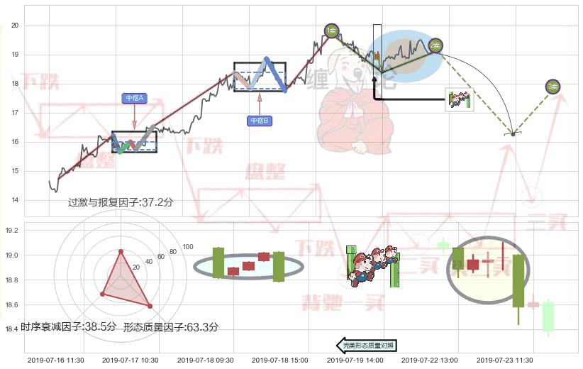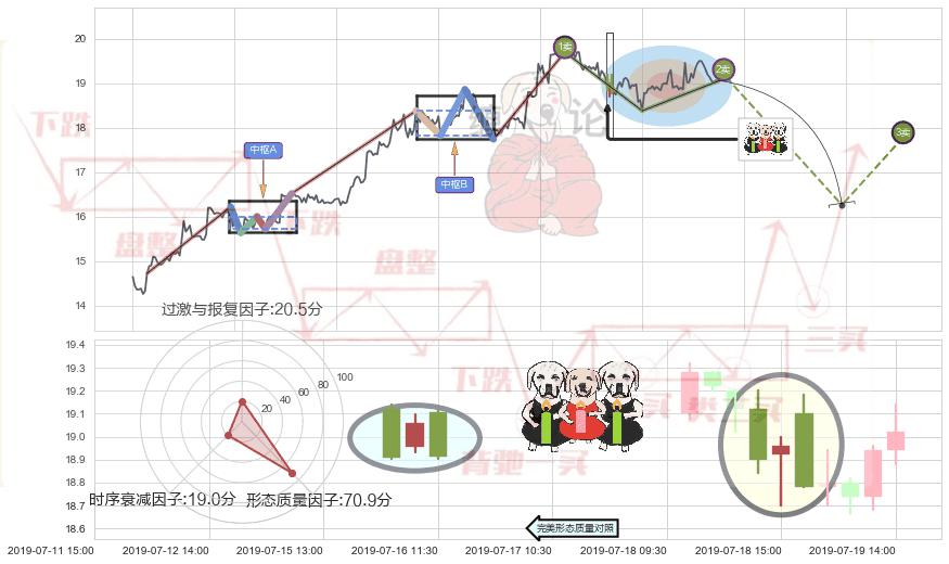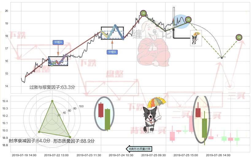 ➢ 🕰 价格走势在2019-07-18 14:00:00至2019-07-19 09:30:00期间形成两黑夹一红,残存影响值:-1.58