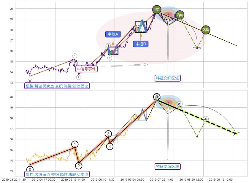 ➣ 缠论买卖点:猜想2卖持续蓄力下跌至3卖 → 下跌 → 风险信号 → 小趋势跟踪