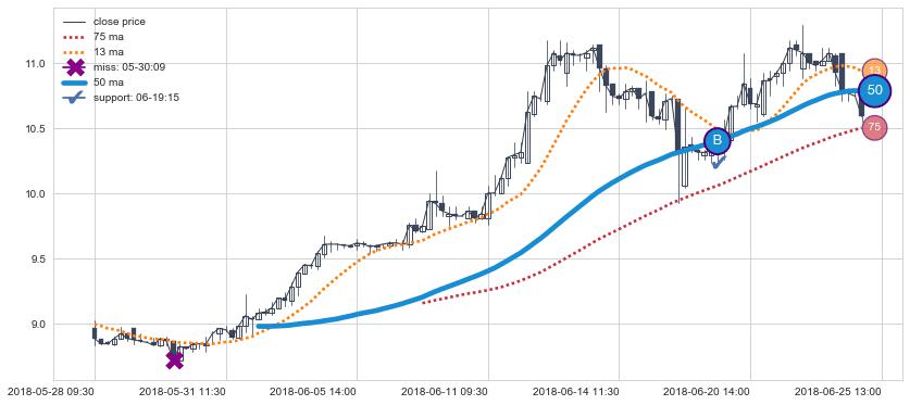 05-21 09:30至06-26 15:00 慢线与快线呈多头排列, 慢线与快线接触少,无缠绕