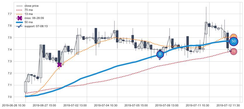 ➣ 75小时均线于(05-15 15:00: 6.56)形成【金叉】基于【金叉历史模型】预测金叉后最高波峰价格: 7.10, 金叉后最高价格8.05,已经上涨超出预测最高波峰价格, 预期回调