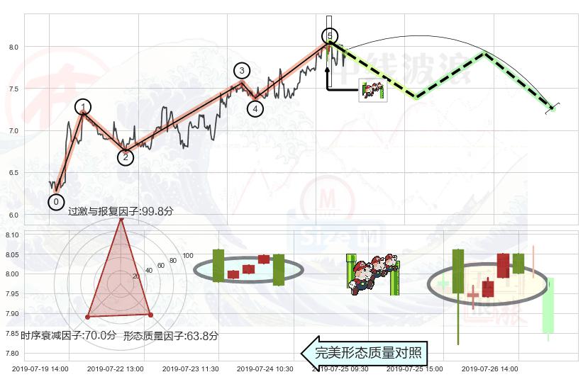 ➢ 🕰 价格走势在2019-07-24 00:00:00至2019-07-25 00:00:00期间形成顶部尽头线(下山虎),残存影响值:-4.56