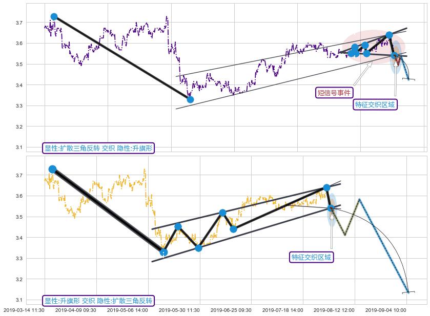 ➢ 扩散三角反转属【短级别信号事件】升旗形属【长级别信号事件】长短周期组合信号事件, 短长事件长度比13.12%