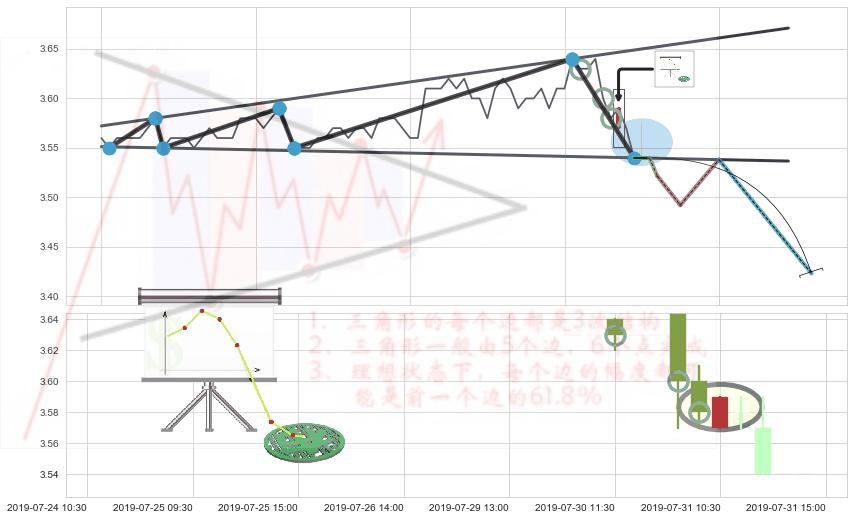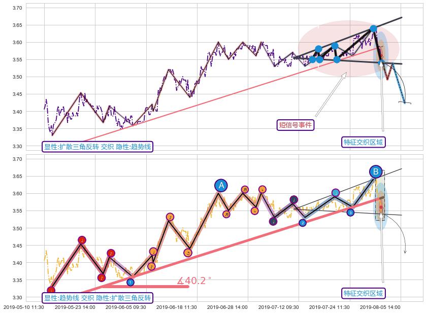 ➢ 2019-05-14 14:00-2019-07-31 11:30上升趋势存在反转[风险],其原上升趋势的支撑位(3.588)已破位[强阻力信号],原上升趋势角度: 40.2˚