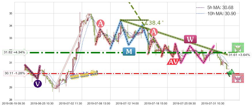 ➣ 预测:2019-08-07 10:00,【小幅反弹】稳定目前下跌趋势的前提下,预测价格:30.86