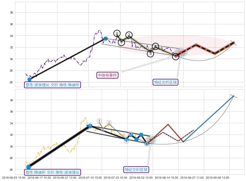 ➢ 波浪理论属【中级别信号事件】降旗形属【长级别信号事件】中长周期组合信号事件,中长事件长度比40.85%