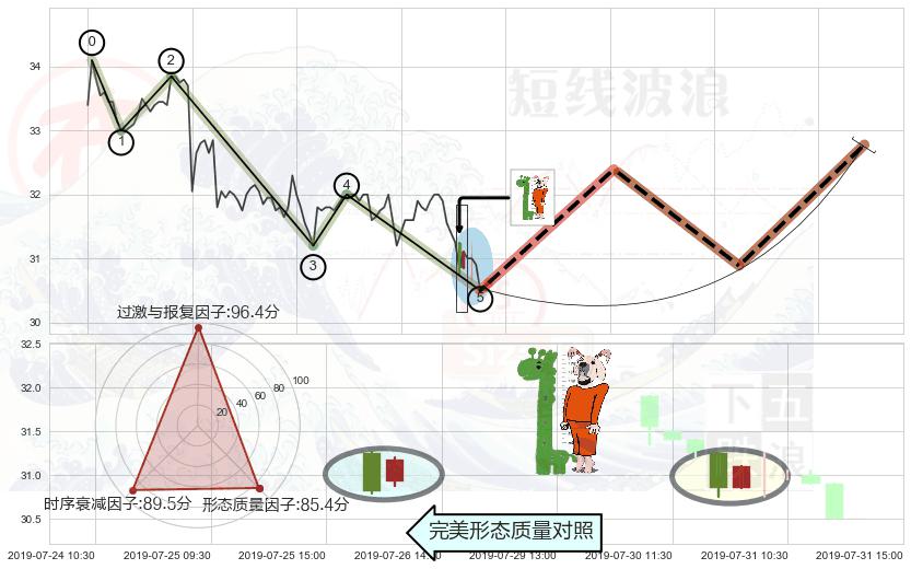 从2019-07-10 09:30至2019-07-31 15:00,共包含96个小时,阶段股价下跌-10.80%,阶段股价变动位移路程比: 1 : 4,下跌趋势角度: 38.4