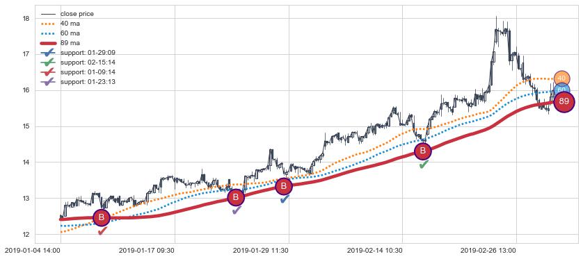 ➢ 最优均线组合共正确确认支撑阻力信号10处,正确确认率 58.82%