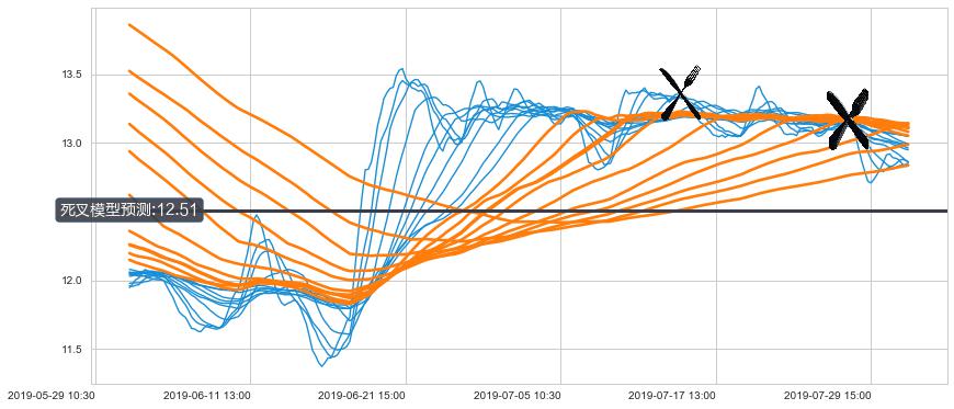 ➣ 34小时均线于(07-26 13:00: 13.17)形成【死叉】基于【死叉历史模型】预测死叉后最低波谷价格: 12.70, 死叉后最低价格12.66,虽然已经到达预测最低波谷价格,但耗时间很短动能很强, 预期继续下跌