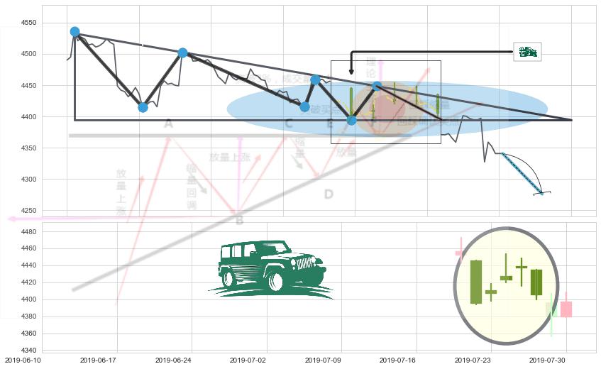 ➣ 【卖2】: 保守型 卖点→(07-30:13: 4394.71 )形成下降三角形整理突破后的【回抽确认】