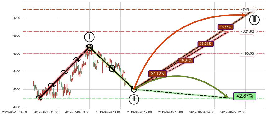 ➣ 循环浪继续向上【平均值】位置(10-16:10, 4621.82),匹配聚类样本比例57.78%, 可能性概率33.01%