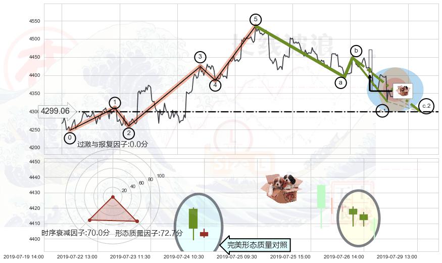 ➢ 🕰 价格走势在2019-07-22 00:00:00至2019-07-26 00:00:00期间形成高档五阴线,残存影响值:-4.21