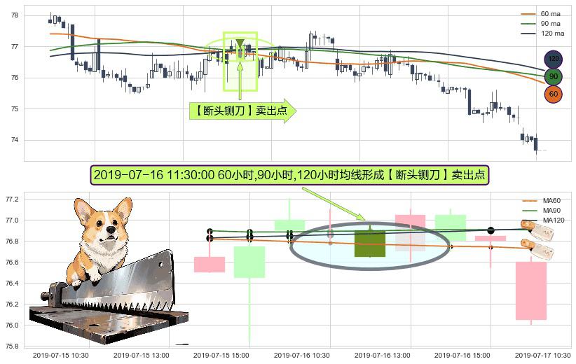 ⚀ 2019-07-16 11:30:00小时显现 60小时-90小时-120小时均线 【断头铡刀】卖出点 看空信号,后市看跌,卖出