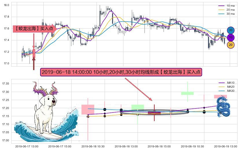 形态多维评估: ⚀ 2019-06-18 14:00:00小时显现 10小时-20小时-30小时均线 【蛟龙出海】买入点 看多信号,后市看涨,买入