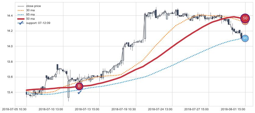 上涨趋势06-11 09:30-07-09 09:30,均线50, 30, 95确认关键支撑2处