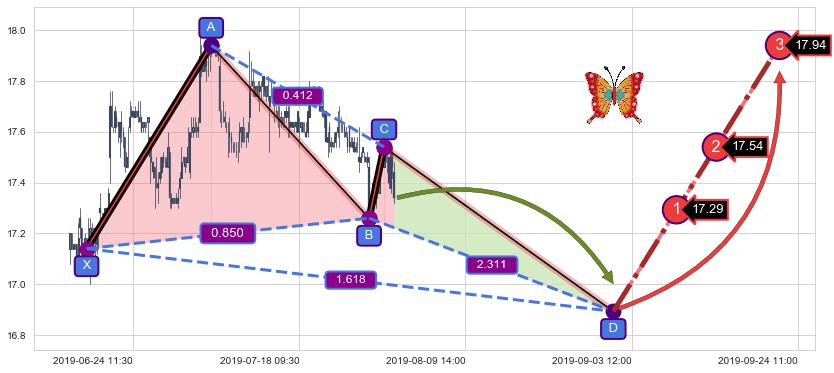 ➣ 未完成【蝴蝶】形态起点X: 06-17:14, 已到达C点: 07-30:13, 预测最终D点: 08-30:13, 共316交易小时