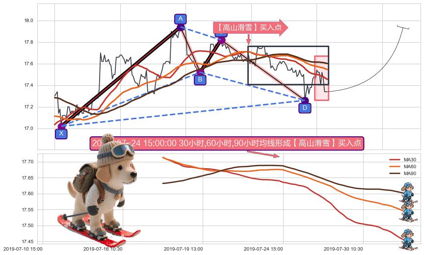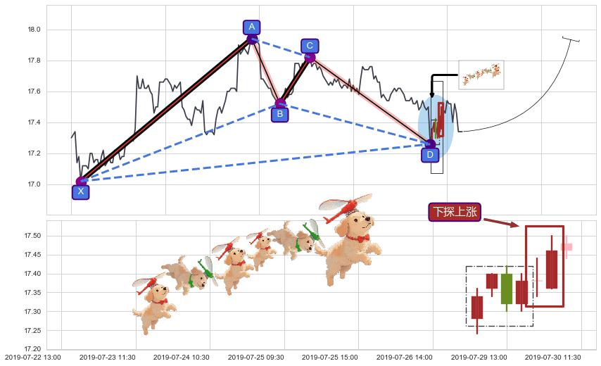 ➣ D点拟合预测价格16.89,距离最后交易收盘价格17.34相差 -2.58%