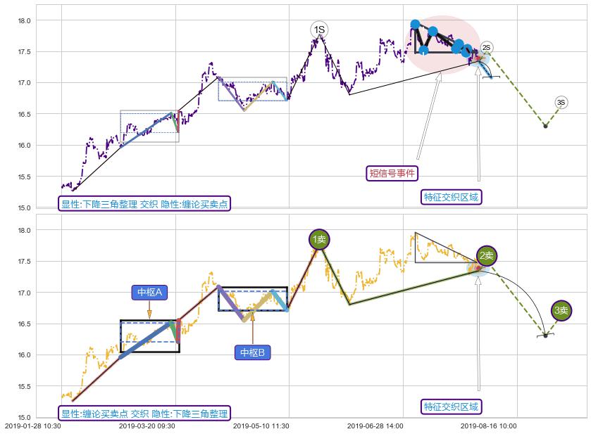 从2019-06-28 10:30至2019-07-18 09:30,共包含78个小时,阶段股价上涨1.64%,阶段股价变动位移路程比: 1 : 8