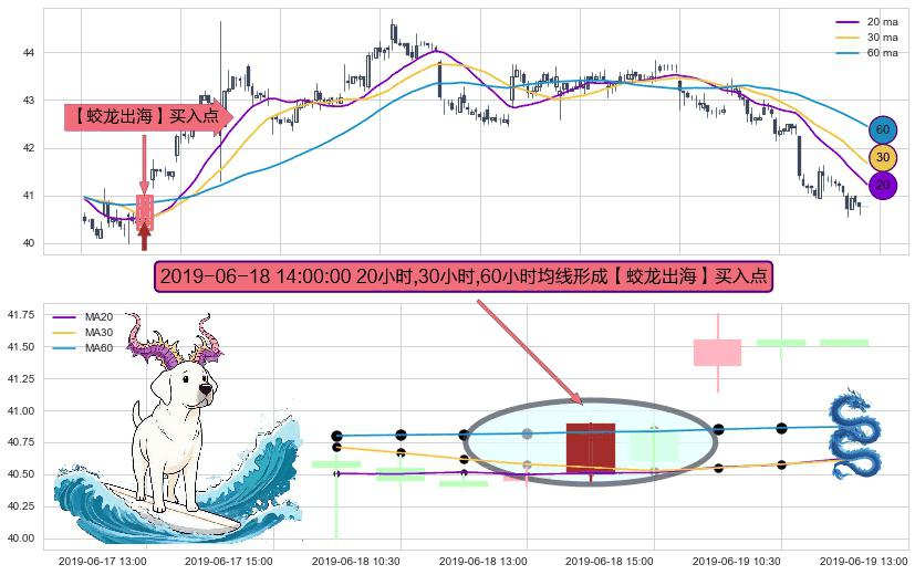 形态多维评估: ⚀ 2019-06-18 14:00:00小时显现 20小时-30小时-60小时均线 【蛟龙出海】买入点 看多信号,后市看涨,买入