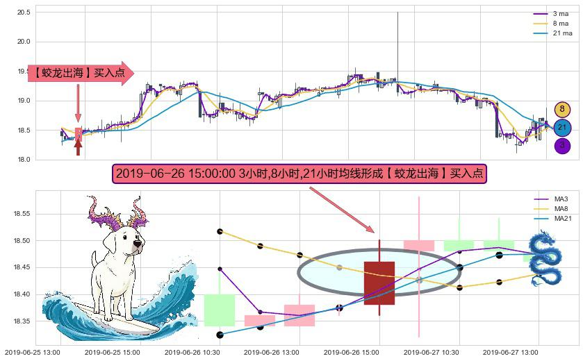 形态多维评估: ⚀ 2019-06-26 15:00:00小时显现 3小时-8小时-21小时均线 【蛟龙出海】买入点 看多信号,后市看涨,买入