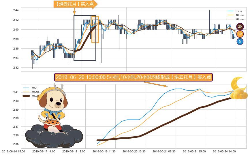 ⚀ 2019-06-18 15:00:00小时-2019-06-24 14:00:00小时显现 5小时-10小时-20小时均线 【烘云托月】买入点 看多信号,后市看涨,买入