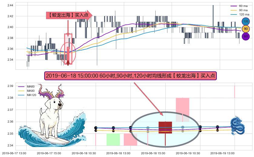 ⚀ 2019-06-18 15:00:00小时显现 60小时-90小时-120小时均线 【蛟龙出海】买入点 看多信号,后市看涨,买入