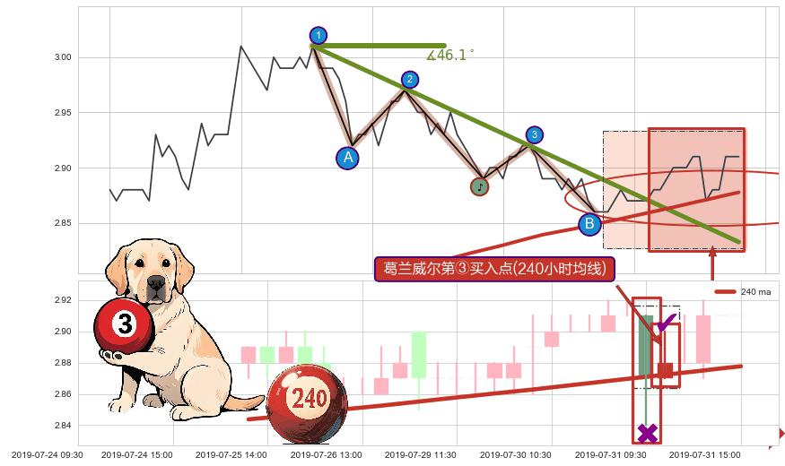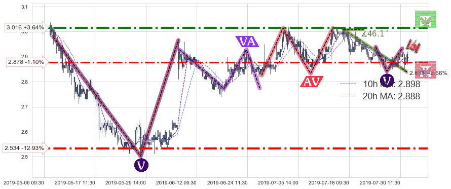⚔️ 2019-07-17 09:30-2019-07-30 13:00下跌趋势存在反转上涨[机会],其原下跌趋势的阻力位(2.833)已被突破[强支撑信号],原下跌趋势角度: 46.1˚