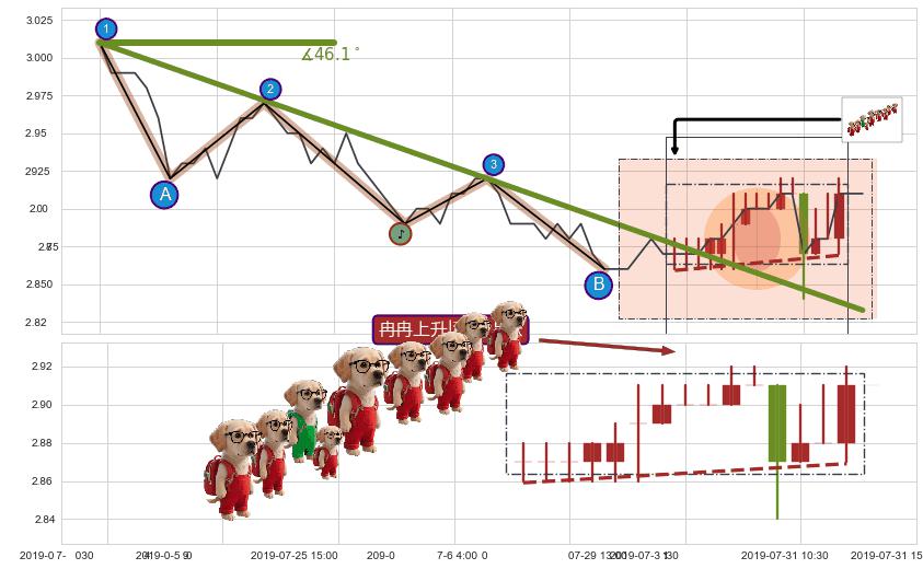 ➢ 最后的下跌趋势2019-07-17 09:30至2019-07-30 13:00:存在突破迹象,后续小反弹或者反转上涨