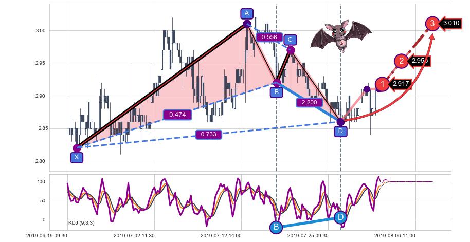 ➣ D点拟合预测价格2.959,距离最后交易收盘价格2.910相差 +1.67%