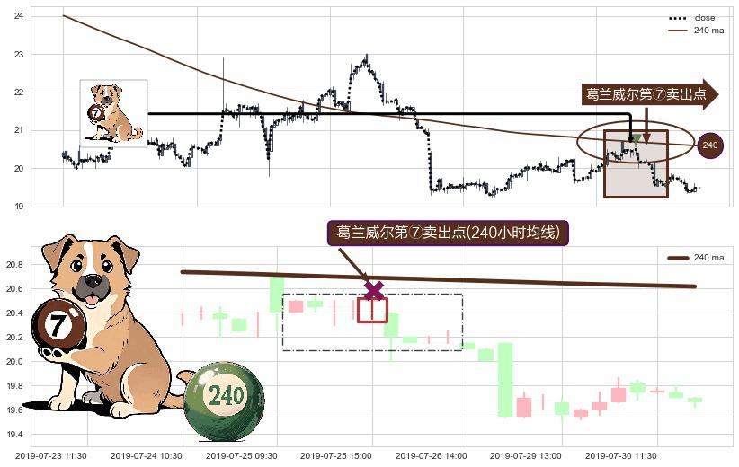 形态多维评估: ⚀ 2019-07-25 15:00:00-小时显现 葛兰威尔均线 240小时均线 第⑦卖出点 下降趋势的中继信号,后市看跌,卖出信号