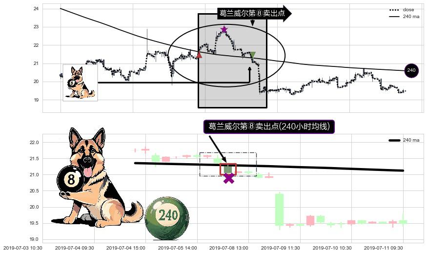 形态多维评估: ⚀ 2019-07-08 10:30:00-小时显现 葛兰威尔均线 240小时均线 第⑧卖出点 下降趋势的中继信号,后市看跌,卖出信号