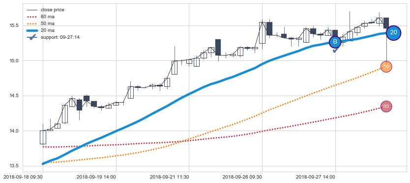 上涨趋势09-18 09:30-09-28 15:00,均线20确认关键支撑1处