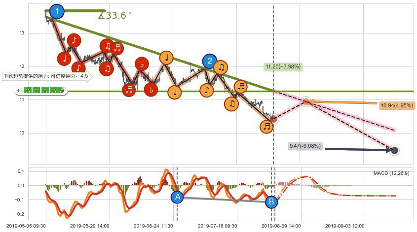 ➢ 预测:2019-08-13 12:00,【小幅反弹】稳定目前下跌趋势的前提下,预测价格:10.94