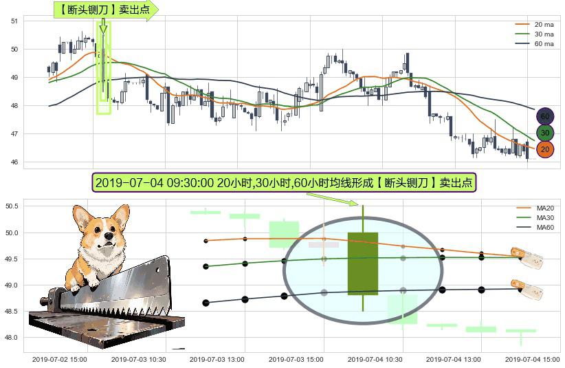 ⚀ 2019-07-04 09:30:00小时显现 20小时-30小时-60小时均线 【断头铡刀】卖出点 看空信号,后市看跌,卖出