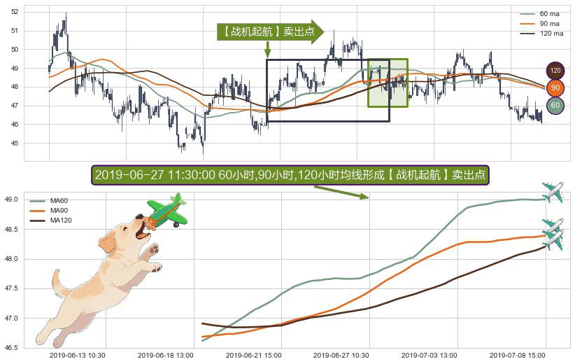 ⚀ 2019-06-18 15:00:00小时-2019-07-08 15:00:00小时显现 60小时-90小时-120小时均线 【战机起航】卖出点 看空信号,后市看跌,卖出