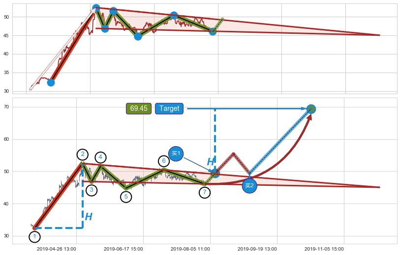 ➢ 最小中继整理涨幅→𝐇: 20.08 (𝐇楔型旗杆的长度:楔型起点→顶点)