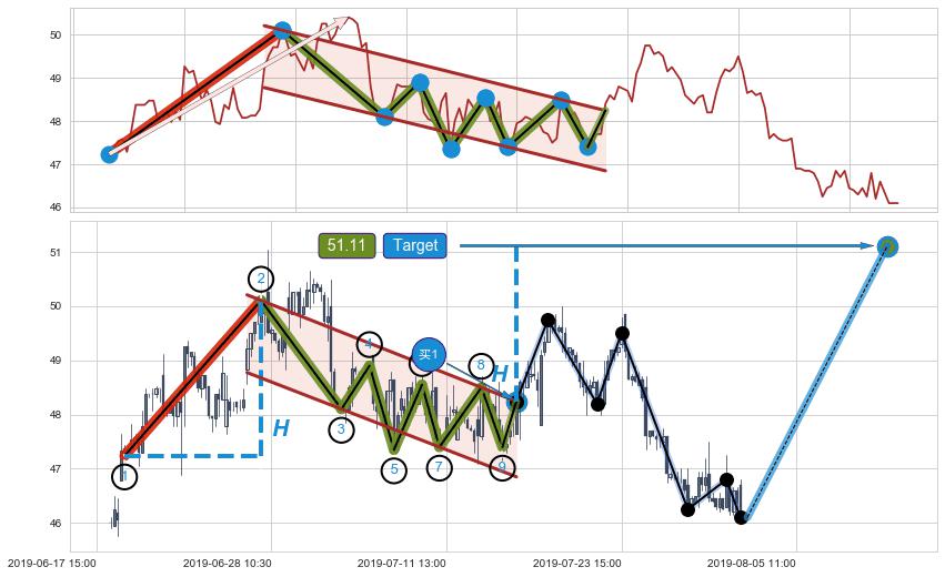 ➣ 最小中继整理涨幅→𝐇: 2.869 (𝐇旗杆的长度:旗杆起点→顶点)