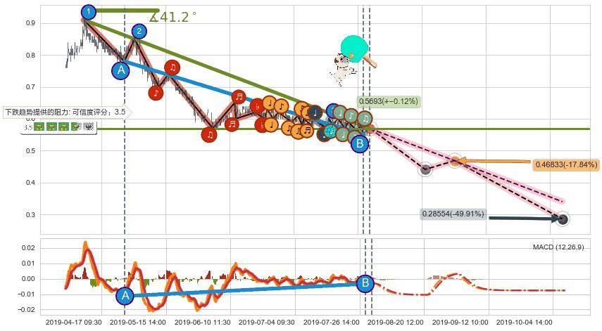 ➣ 预测:2019-08-30 15:00,【试探阻力】稳定目前下跌趋势的前提下,预测价格:0.46833